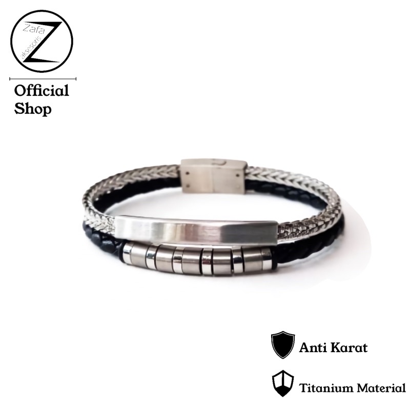 Jual Zafa Gelang Pria Titanium Stainless Steel Kulit Keren Anti Karat Bangle Warna Silver Hitam Elegant Indonesia Shopee Indonesia